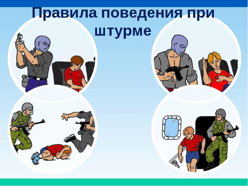4) Не вступай в споры с террористами, выполняй все их требования. Помни: это вынужденная мера, ты спасаешь себя и окружающих.